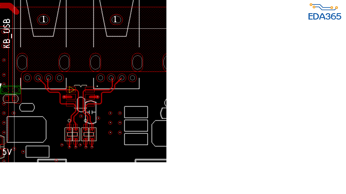 USB到 防护器件的线较短,就走了个类差分线,这样走下来正好等长要不也是得人工绕等长 从USB到下面的串接电阻 线长为437mil