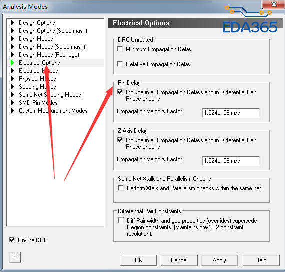 规则管理器,Analysis Modes——Eletrical option就看到了,把它勾上就好了,一般的无论我们有没有pin delay,都勾上,反正你没数据它不会加入等长,有才会加入。