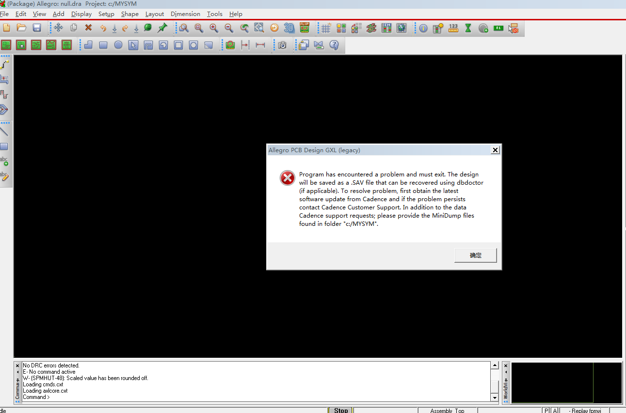按照论坛里的破解方式使用fpm,在生成封装时打开allegro后报错,然后软件就直接关掉了,不知道怎么处理,求帮助