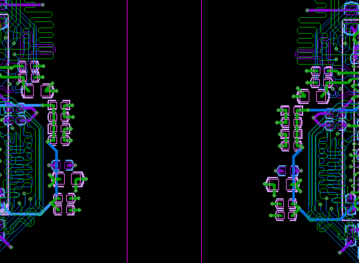 先使用place replicate create,将两路相同的模组在同一层完全相同。然后mirror其中一个group,得到一个不同面的镜像,在把元件原地change到另一层,etch做相应的change.