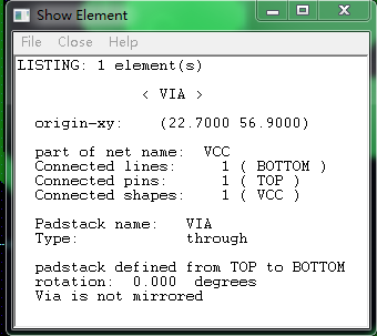 我截了个图,这是从TOP层打到BOTTOM的过孔(左图),网络是GND,地层shape的网络也是GND,可是show elements里没有显示这个via与GND层连接;而另一个VCC的过孔show elements就显示了它与VCC层连接。(右图)麻烦您帮忙看下这是什么情况?十分感激