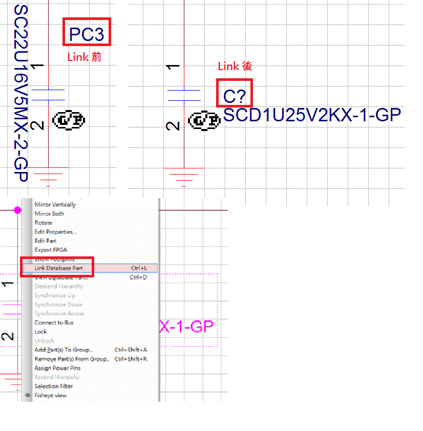 LINK下,会以数据库中料号为索引 变更相应项,同样VAlue 也会跟随变动