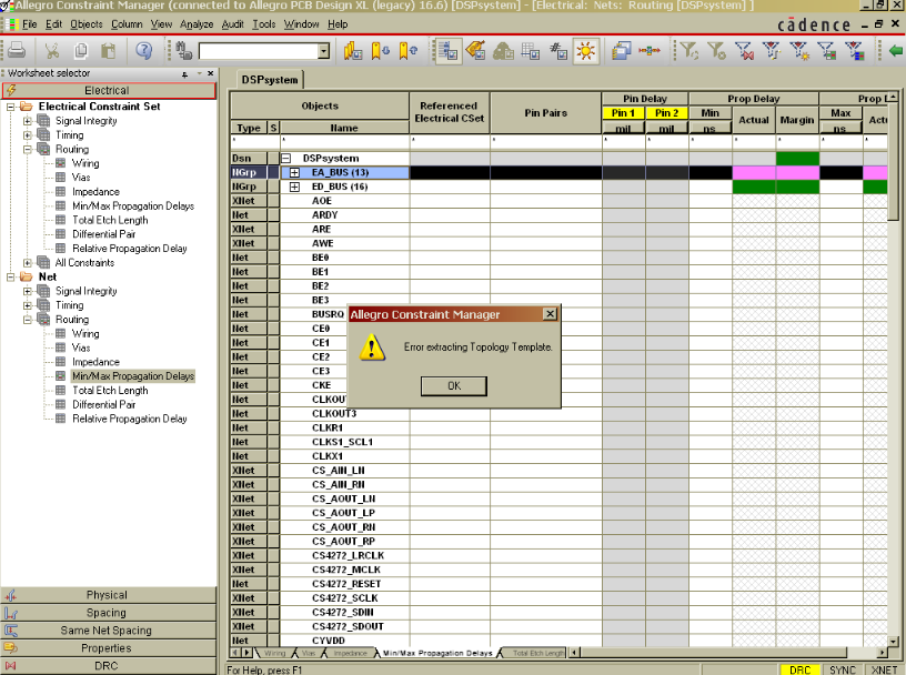 在约束管理器调用SigXplorer出错 - Net cannot be extracted. Do you want to invo...