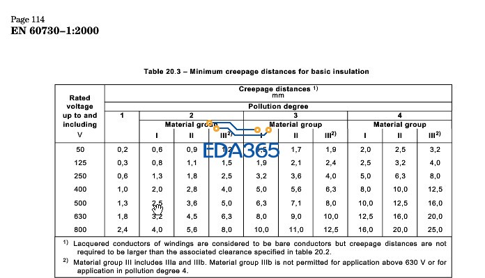 我们的产品是风阀执行器,电路板污染等级2,材料组3a.AC220V输入,L与N之间,高低压之间爬电距离需要符合如下标准,摘自 EN60730。对于220V的L线与N线的爬电距离,查表,额定电压选250V,污染等级2,材料组3a,可知为2.5mm,如下图
