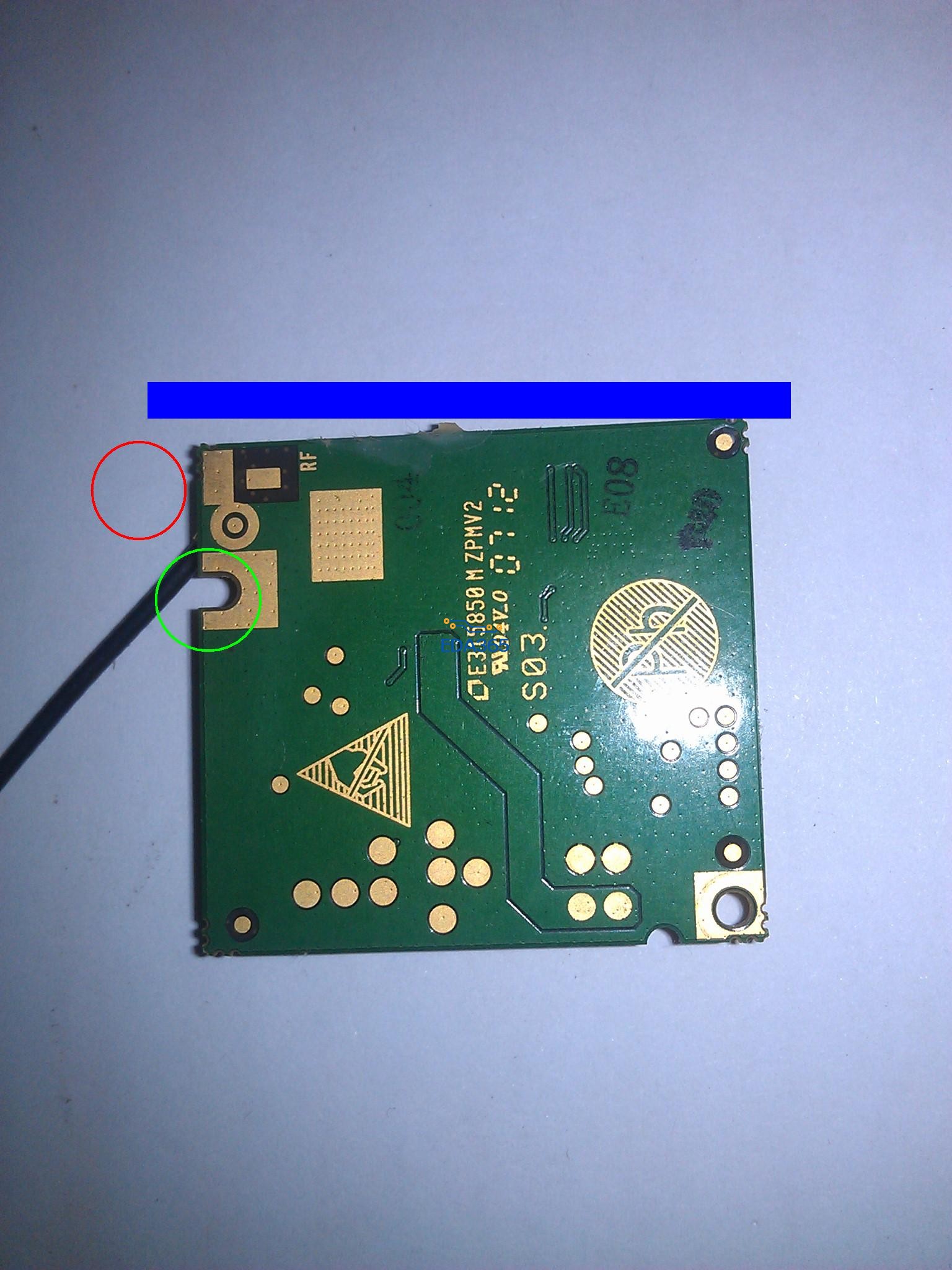 天线是在模块上面的,是在模块的反面,没有在pcb上面~用连接器连接到外面天线座上的!