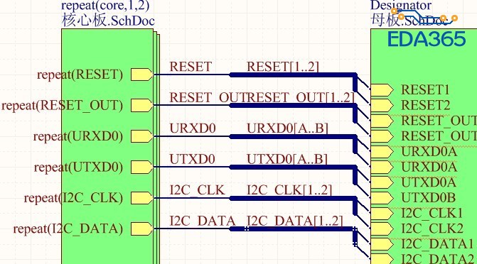 上图中两个端子的9脚,左边母板图中是RESET网络,右边核心板图中是RESET1网络。