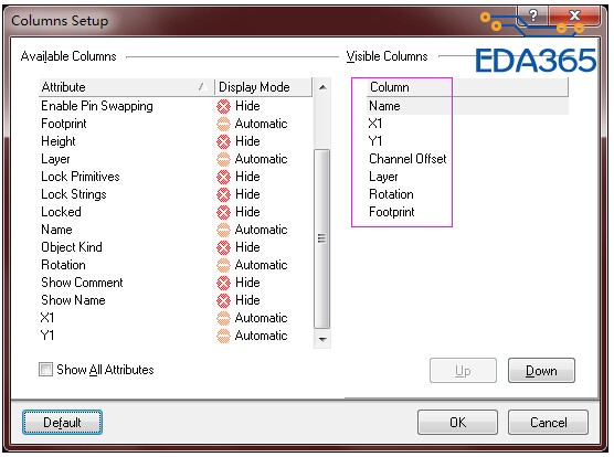 我们来设置一下,让PCB list只显示我们需要的元器件详情,并且适当排序下: