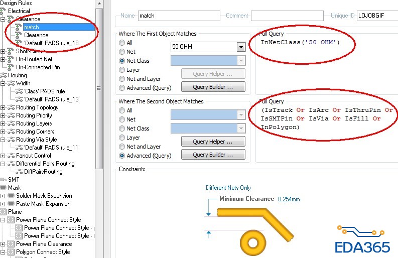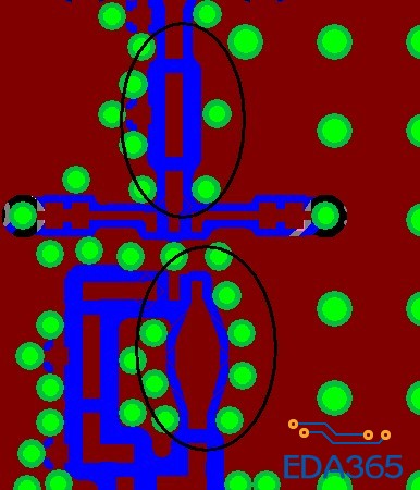 黑色圈圈那里,同样是地网络的覆铜,对其他不同的网络保持不同的间距,在AD里面怎么实现