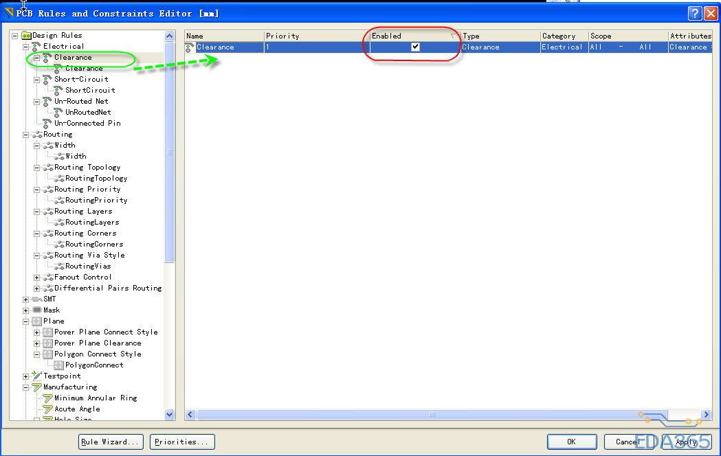 DXP中设置了最小线间距,但是PCB中两条线重叠都不出现绿色的报错信息,求救...