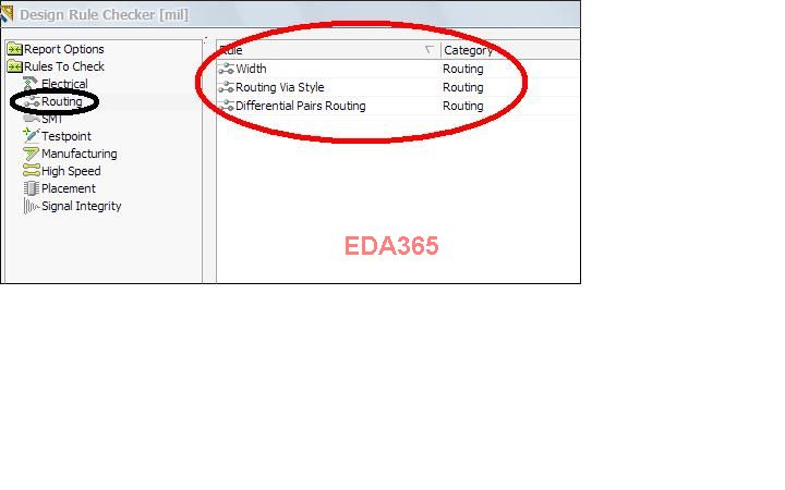 具体如在设置rule的时候routing选项里面有一个routing corner,但是在design rule check的窗口里面没有如下图