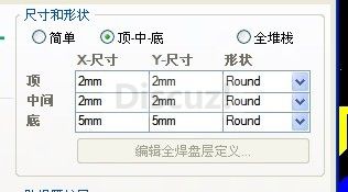顶中底可以在不同的层面定义不同的焊盘大小,比如你的线从top直接到bottom,那么可以将中间的焊盘缩小一些,以便腾出更多的走线空间,这样做的话注意如果你做top 2 in1 的盲孔的话,那么in1 的焊盘必须在孔径的基础上至少外扩3mil,2mil需要与板厂商量。这个俺犯过错误,与大家共勉。
