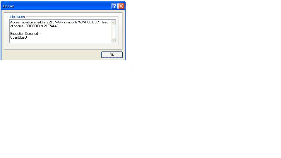 一个PCB文件,protel画的,用protel可以打开,用AD9打不开,错误提示如下。用这个PCB在protel中导出的库文件在AD9中可以打开。不是我电脑、软件的问题,应该是PCB损坏了,因为在别的同事电脑上也有同样的问题,请教各位大侠怎么解决,从网上查了好久没有找到方法,很郁闷!