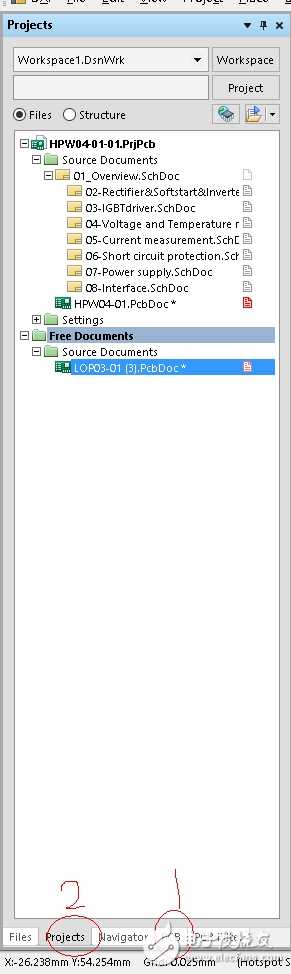 如图,每次打开圈1去看网络后回到正常的projects圈2,PCB文件就不能操作了,器件都不能选中,有谁遇到过这样的情况吗?如何解决?圈1 被电子发烧友吉祥物挡住了