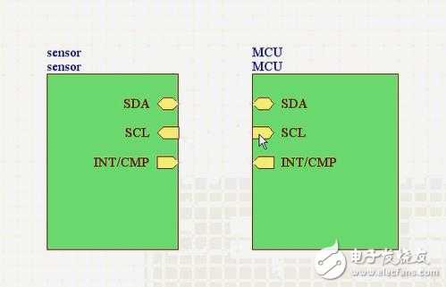 在按视频教程学图纸设计,教程里那个“图纸入口”(sheet entry)画好一个以后,鼠标拖拽就能在另外一个图表符中产生对应的图纸入口,,但是我自己做的时候,直接把它所在的图表符给延长了,,教程里没有说再按什么键。求解释就是图里面的SDA SCL INT/CMP,,视频里一拖,右边正好出现相反的一对