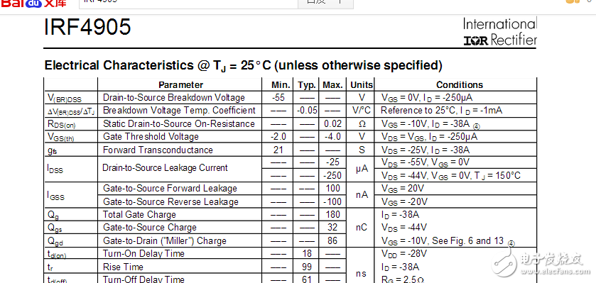 IRF540/IRF4905的datasheet的参数如下图片所示、谢谢!