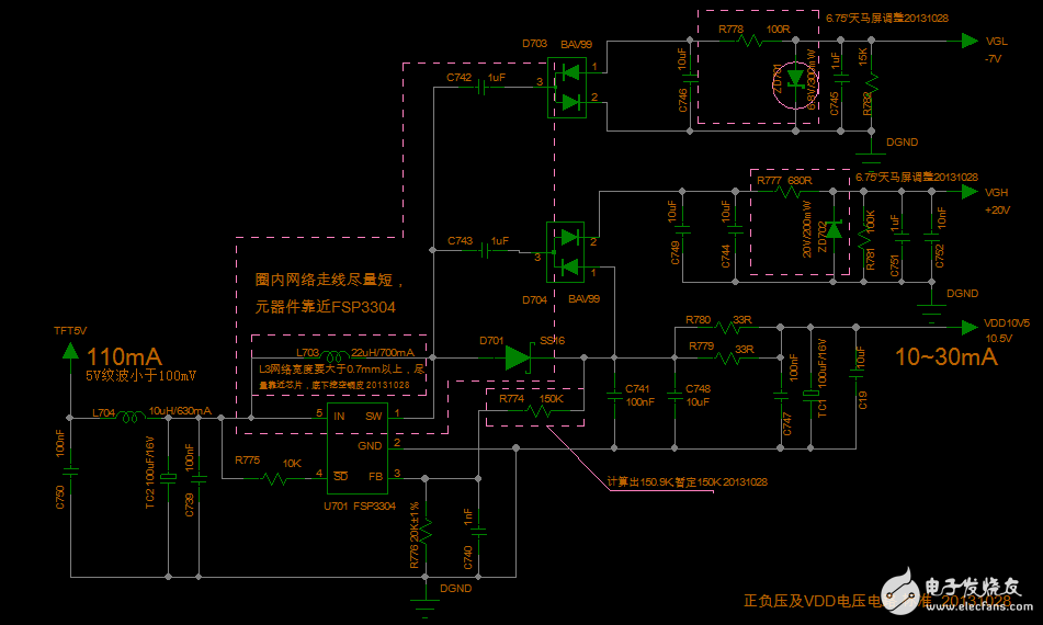 以下是我以前做过项目使用的给显示屏偏执供电的电路。接地点不同 D4和D5 配合C50 C51产生不同电压。稳压管最终稳定电压输出。