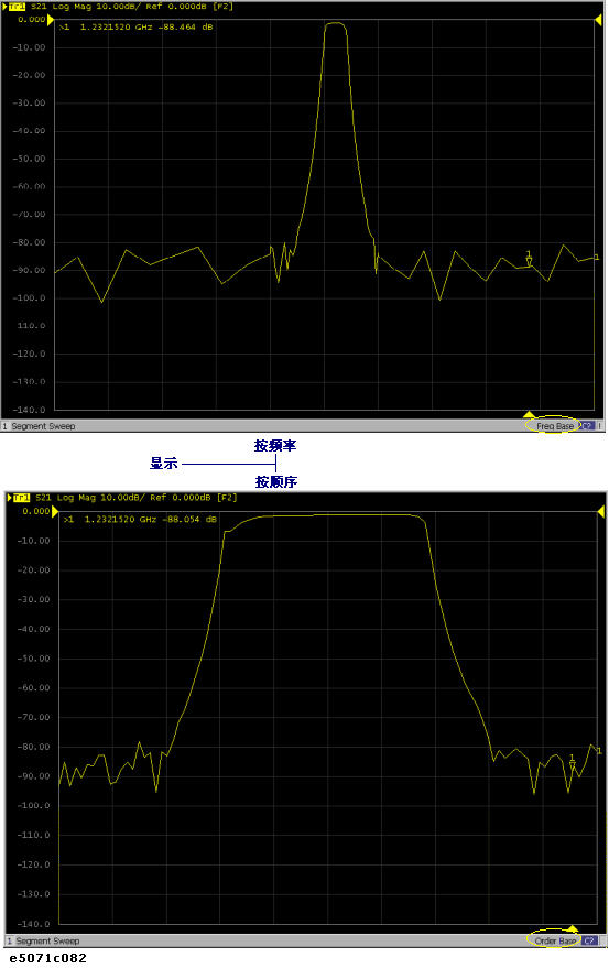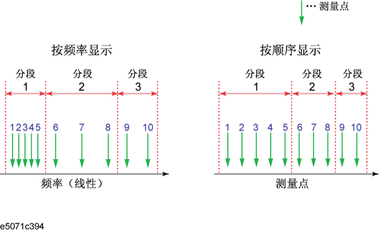 您可以选择执行分段扫描时显示迹线的方式:按频率或按顺序显示。