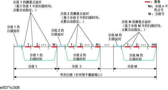 对于分段扫描,可以为每个分段设置扫描范围、点数、IF 带宽、功率电平、扫描延时、扫描方式和扫描时间。