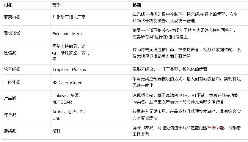 另外,有些厂商的特色在本文中没有完全展现出来,如Trapeze的NonStop技术带来的高可用性,以及Ruckus的BeamFlex和SmartCastle技术对高品质流媒体应用传输的保障等。如果对本文探讨的门派有不同看法,随时欢迎与我们做进一步的交流。