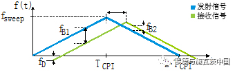 使用LFMCW,雷达在一定时间内(称为相干处理间隔TcpI)发射具有特定带宽fsweep的调频信号(线性调频),如图2所示。
