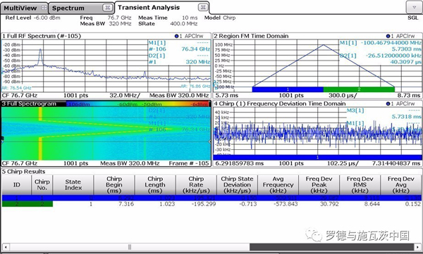 图9:用R&S FSW-K60瞬态分析选件分析雷达探头
