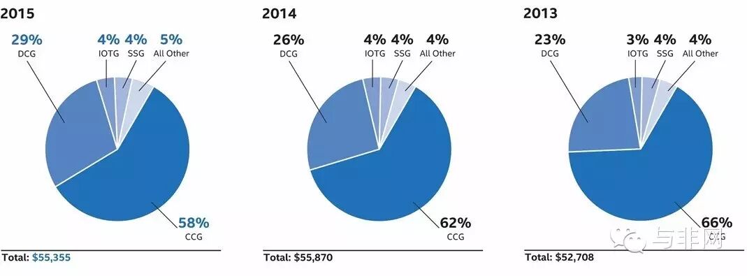 英特尔数据中心业务(DCG)占营收比例逐年提高