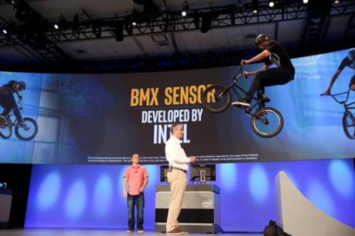 科再奇展示了一款内嵌英特尔Curie模块的BMX自行车。这款自行车可以实时收集和分析运动数据,记录高度、速度和位置等信息,包括空中角度和轨迹。这改变了运动员和教练员的运动体验,让运动数字化!看,他们玩得多嗨!
