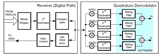 图4. AMIS−49587接收器ADC和正交解调器方框图