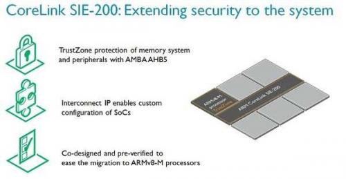 安全需要的不仅是一颗CPU,而是一整个系统解决方案。 CoreLink SIE-200 嵌入式装置专属系统IP提供许多IP模块,这些建构在AMBA 5 AHB5接口之上的模块将TrustZone的安全性延伸至整个系统。 可自设的互连与TrustZone控制器提供一种硬件执行的隔离机制,用来分隔安全与非安全应用,并支持多种系统架构,让设计者能针对特定应用设计专属的方案。
