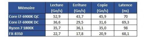 其中Ryzen 1800X处理器被限制在3GHz。同时禁用所有测试对象的SMT和HT功能。内存设置方面,Ryzen 1800X和Intel i7-6900K平台装配时序为15-15-15-35的DDR4-2400内存,AMD FX-8350K配备的则是时序9-9-9-24的DDR3-1600内存,内存容量均为16GB(4*4GB)。
