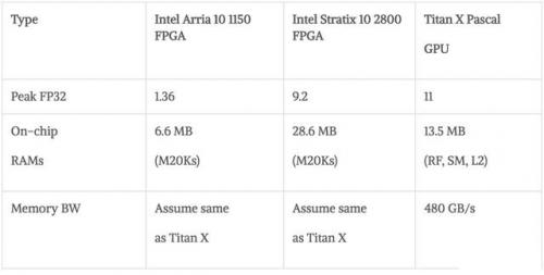 基于14nm工艺的英特尔Stratix 10在FP32吞吐量方面达到峰值9.2TFLOP/s。相比之下,最新的Titan X Pascal GPU的FP32吞吐量为11TFLOP/s。