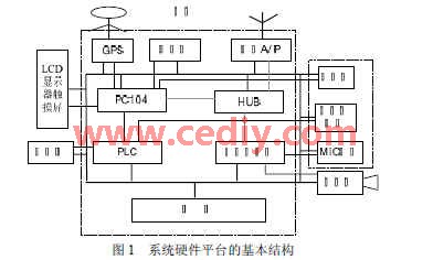 考虑到对车载通讯系统应用的要求,采用PC104组件为车载通讯系统的核心部件,作为上位机;车载通讯系统的下位机采用西门子公司的S7-200PLC,上位机和下位机之间通过西门子公司的PC/PPI 通信电缆协议转换器进行连接;系统采用无线局域网与监控中心和基站进行通讯;视屏服务器用于摄取驾驶室内考试过程中的图像信息,转为网络中的数字图像信息,在局域网上传输,以便考试监控中心对整个考试过程进行监控和考试视屏信息备案;GPS为地标定位(检测、标定项目位置和行车轨迹);指纹仪用于识别考生、考官身份;传感器用于检测系统要求的信号,反映出工作状态,在信号的传递过程中要虑除干扰,传感器信号传至PLC或PC104。整个系统的硬件结构图如图1所示。