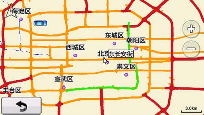 举例说明:出发地魏公村--目的地北京站,任我游GPS给出的导航方式是走大慧寺路,如上图所示。