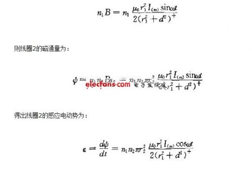 如图4所示,线圈1和线圈2分别位于基座和手机接收模块内,假设给线圈1(匝数为"。)通以的电流,则线罔2(匝数为)处的磁感应强度可以近似为: