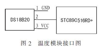 温度模块采用美国DALLAS公司生产的DS18B20一线式数字温度传感器。DS1820数字温度计提供9位(二进制)温度读数指示器件的温度信息,经过单线接口送入主机CPU,被测温度值为-55~+125℃。温度模块与主控CPU的接口电路如图2所示。