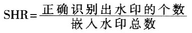 本文采用识别率(SHR)对检测到的承印进行性能上的估测。识别率定义为正确识别的水印与嵌入水印之比。公式如下: