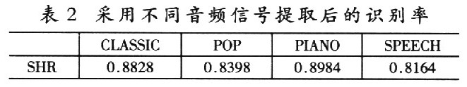 采用不同音频信号提取后的识别率如表2所示。