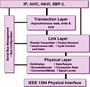 苹果计算机所实做的1394标准是以Firewire为名,并且申请注册为商标,而Sony则是把它称为i-Link,基本上,这两种实作都符合 IEEE1394a-2000标准。虽然在市面上已经可以见到定位于高阶的1394b产品,但是数量非常稀少,主流产品仍为1394a-2000的兼容标准产品。虽然在账面规格来说,1394a最大的传输速度为400Mbps,略逊于USB2.0的480Mbps,但是实际应用上,两者的速度相差无几,在处理器占用率方面,更是具有相当大的优势。不过问题是,1394的授权费高,芯片生产成本也较高,因此虽然1394a出现的早,但是从未真正普及过。而价格低廉,且兼具强大背景实力的的USB甫推出便迅速席卷了市场。