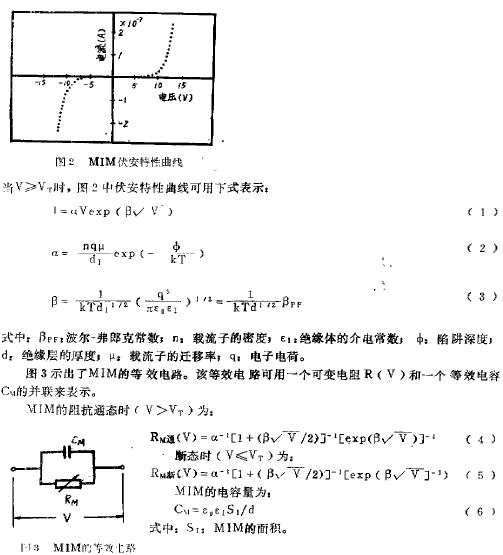 生雪崩击穿。其伏一安特性的关系可甩式(1)表示。对于绝缘层是Ta zO 的MIM来说,实