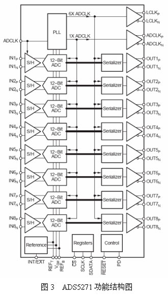 ADS5271 可由内部或外部参照驱动,不过通过内部参照模式才能实现最佳性能与最简系统设计。该器件采用节约面积的散热增强型 PowerPAD、TQFP-80 封装。