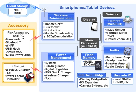图示1-大联大诠鼎代理的Toshiba相关于智能手机、平板电脑的产品示意图