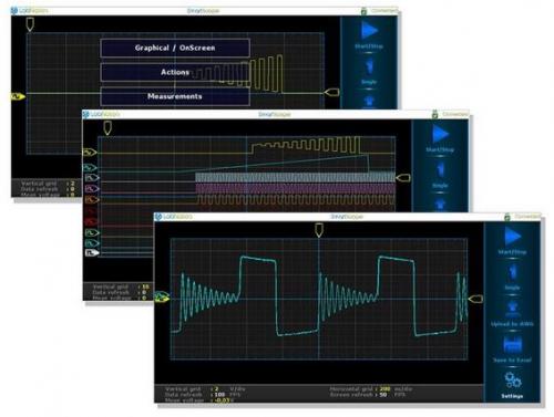 On all existing USB oscilloscopes, the software clearly has been an afterthought. Not so for the SmartScope! While competitors try to imitate traditional scopes by literally demanding the user to rotate knobs with a mouse, the SmartScope reinvents the way we will operate oscilloscopes: by making full use of the touchscreen!