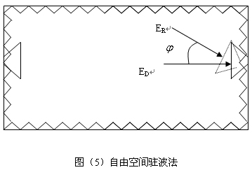 (4) 在不同的角上,重复(2)、(3)步骤,就能求出一系列空间驻波曲线,再由驻波曲线的包络来求出Δab值,在ED>ER的情况下,由式(8)就能求出不同方向上的反射率电平。如果ED>ER,则需按下式计算反射率电平: