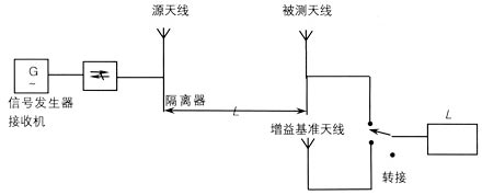 (1)增益基准天线与源天线对准,通过转接,使增益基准天线与接收机相连接,此时接收机接收功率电平为P1(dBm)。