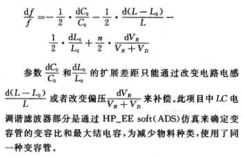一些设备要求在调谐时,2个或多个同时调谐的电路之间的频率关系保持恒定,即称之为跟踪(Tracking)。这要求各变容管在任意调谐电压时的偏差均很小。在要求覆盖相同的频率宽度,但各自的起止频率不同时。(比如超外差式接收机中本振和射频电路就是这样),就需要特别留意减小跟踪误差。根据前述对不同的变容管,可以通过串联或并联不同的电容来减小跟踪误差,其所必须预先考虑的频偏可描述为: