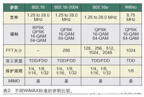 为了避免干扰,发送信道必须保持在规定的频率范围内,并采用规定的功率电平。因此两个更基本的WiMAX发送器测量与表征WiMAX设备发送信号的频率和功率有关。因为WiMAX信号采用突发方式发送信号,因此对频率精度的发送器测试要求信号分析仪具有足够的瞬时带宽来捕捉感兴趣的全部信号。表2给出了针对各种WiMAX工作频率范围和标准的信道带宽。