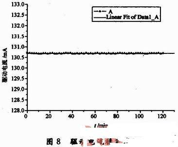 在室温下,采用恒流模式连续测量2 h的驱动电流,每2 min采一个点,其中设定驱动电流为130 mA。测量数据如图8所示。