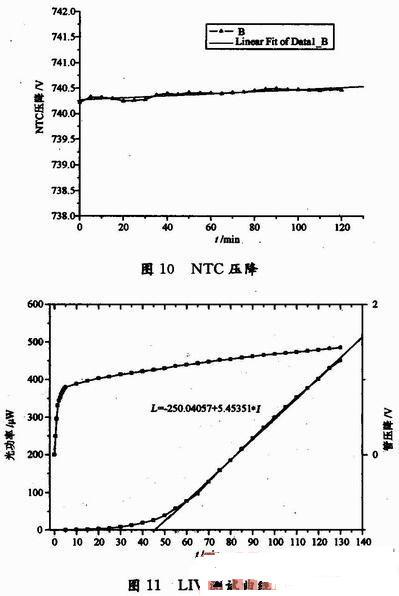 利用该系统对该器件还进行了LIV特性测试,其中步进电流为5 mA,驱动范围为0~130 mA,测量数据如图11所示。