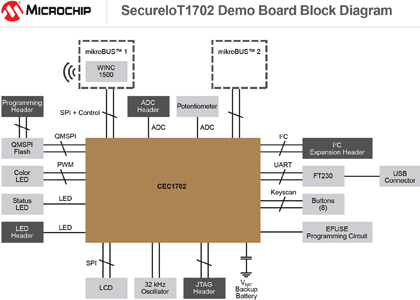 开发人员可以使用SecureIoT1702新开发板开始设计应用程序,这一电路板包括CEC1702 MCU、一个紧凑的高对比度串行图形LCD显示模块、按键和两个与MikroElektronika mikroBUS™扩展接口兼容的扩展插头。与WINC1510 Wi-Fi click board™和单独提供的MFi芯片相结合后,SecureIoT1702电路板和Wi-Fi SDK为MFi许可客户提供了开发HomeKit应用的基本构建模块。