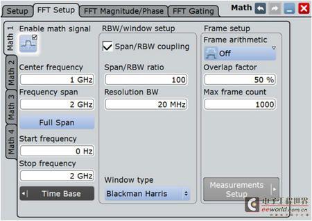 •频谱分析设置同频谱分析仪类似,直接对频谱参数进行设置,而不再需要进行复杂的时域参数调整;